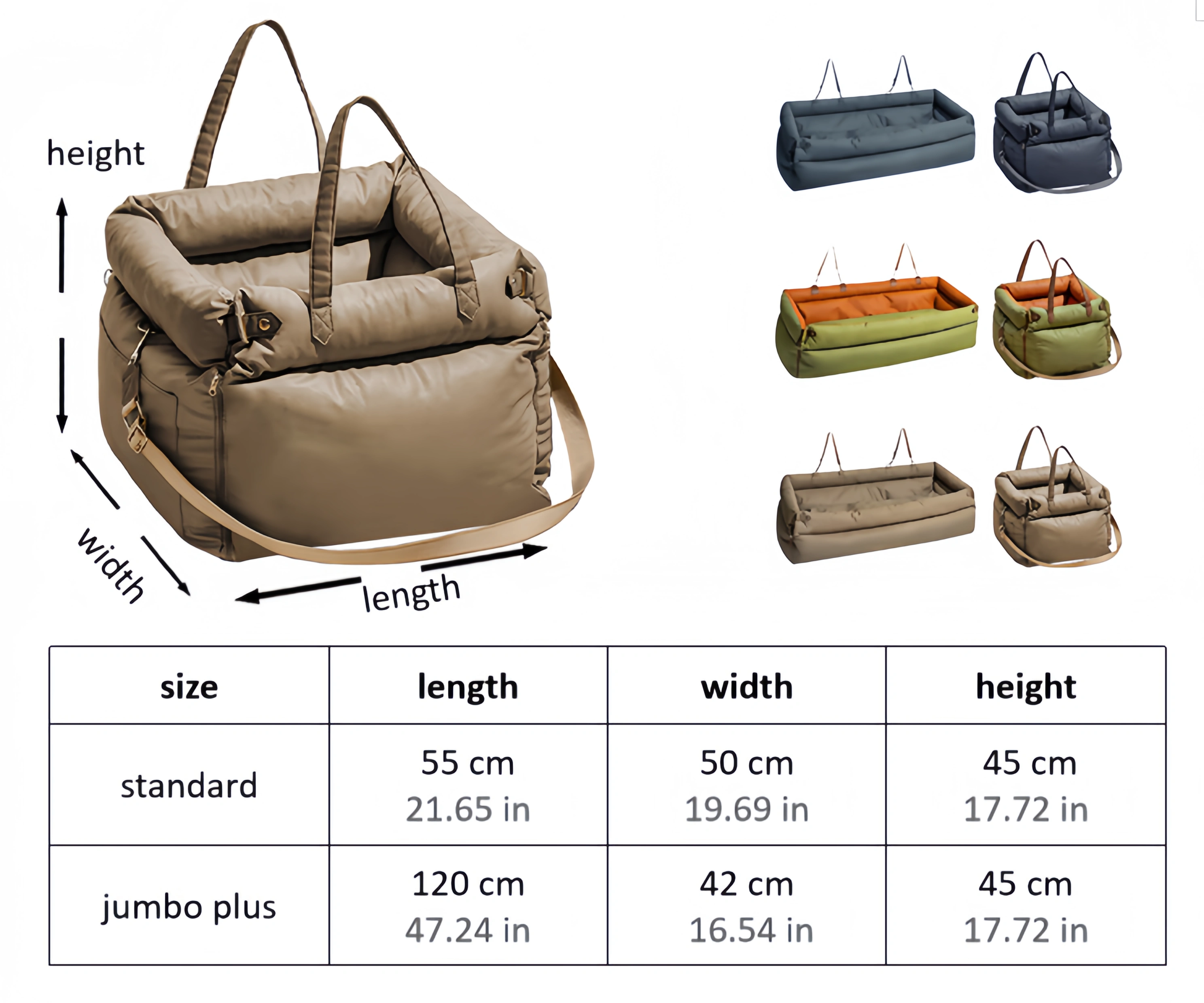 Jumbo Plus:120 × 42 × 45 cm / 47.24 × 16.54 × 17.72 in